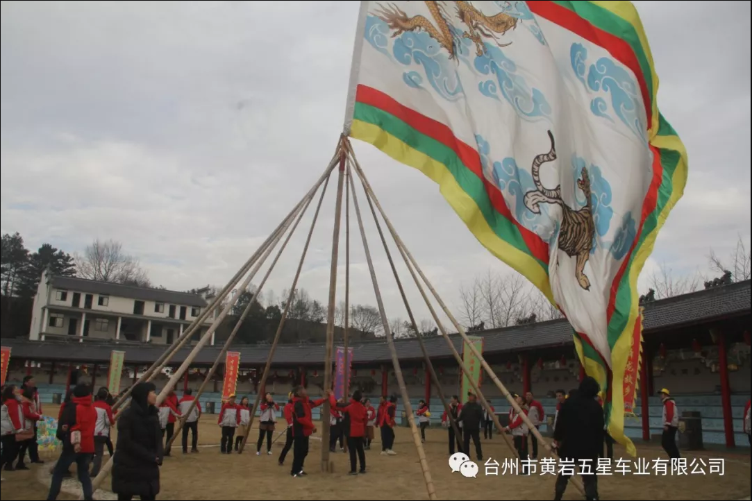 在“群山之祖,諸水之源”的磐安,至今流傳一項氣勢磅礴、驚心動魄的民間文藝習(xí)俗——迎龍虎大旗,而此時五星的家人們也在一聲號令中,眾人一齊用力,同心同德,大旗緩緩豎起也豎起來這面龍虎大旗。
