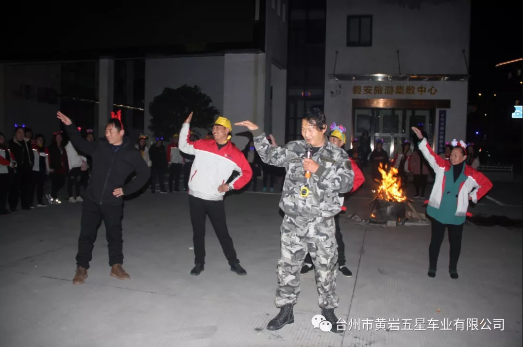 入住酒店,晚餐后,在教官的帶領(lǐng)下一場“紅紅火火,熱情激揚”——篝火晚會。當(dāng)熊熊篝火在黑夜中燃起,大家圍在一圈牽著手,搭著肩,來段兔子舞熱身開場。