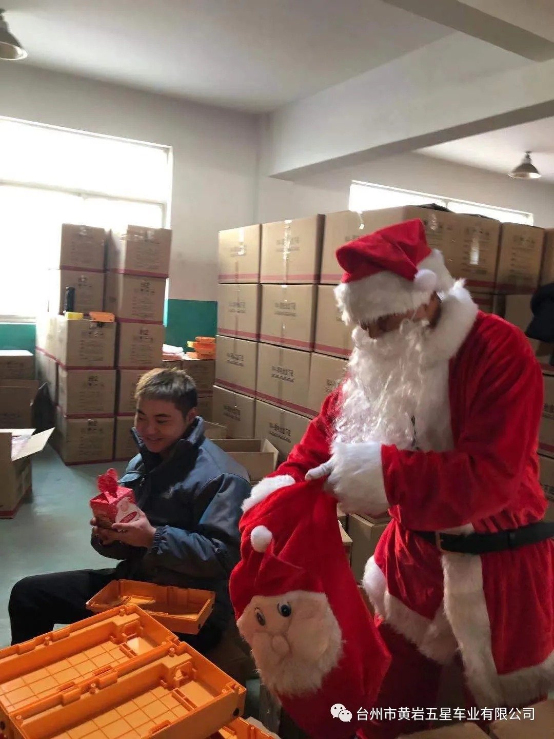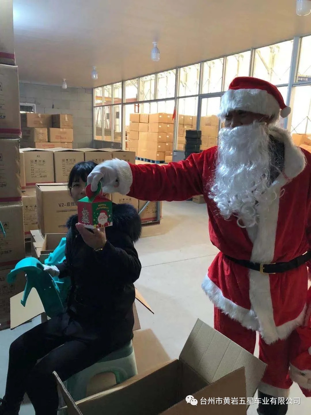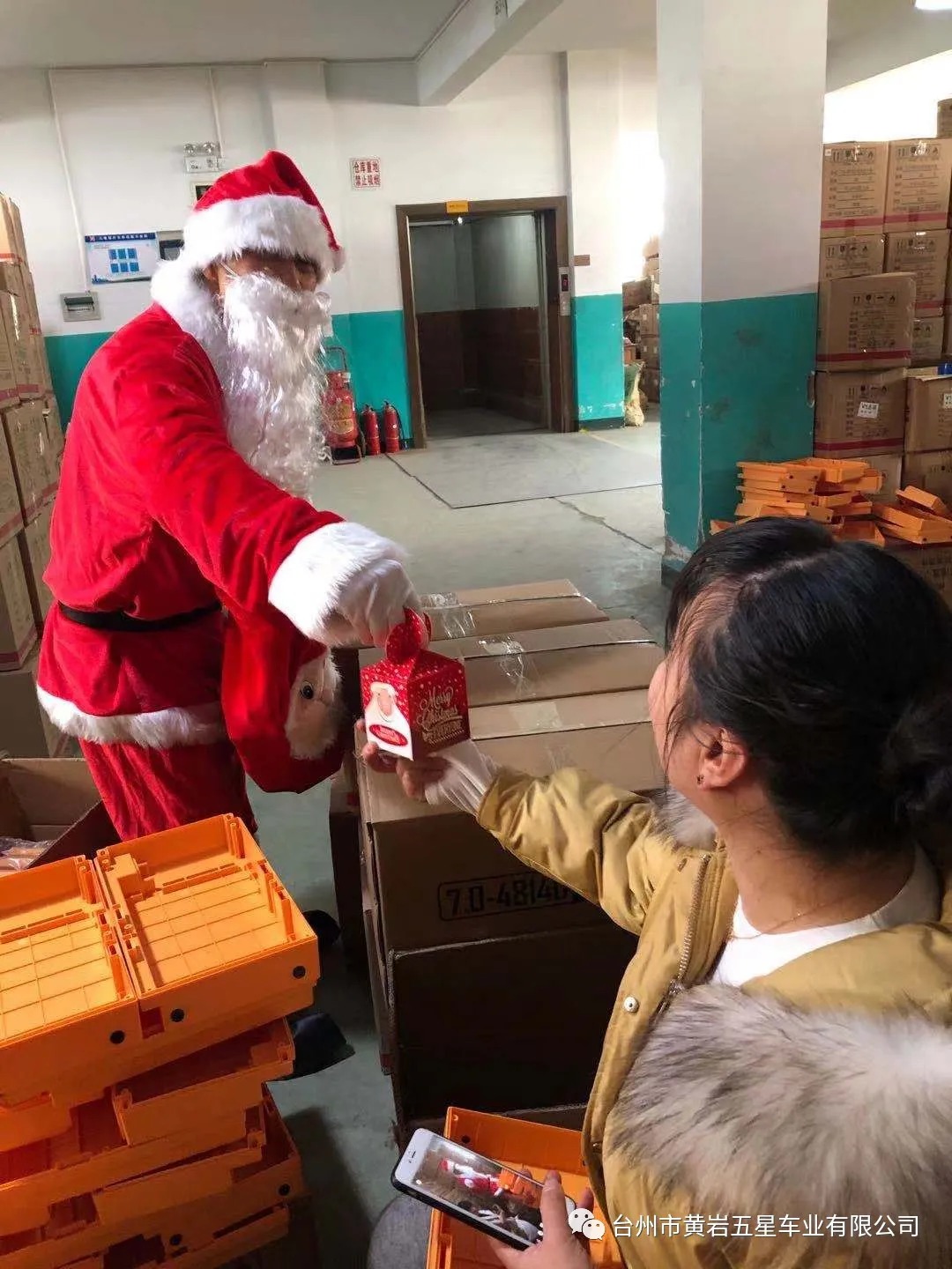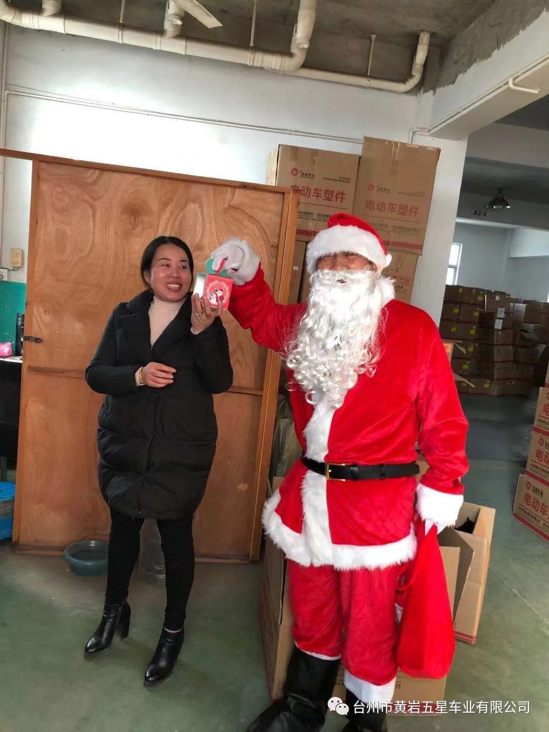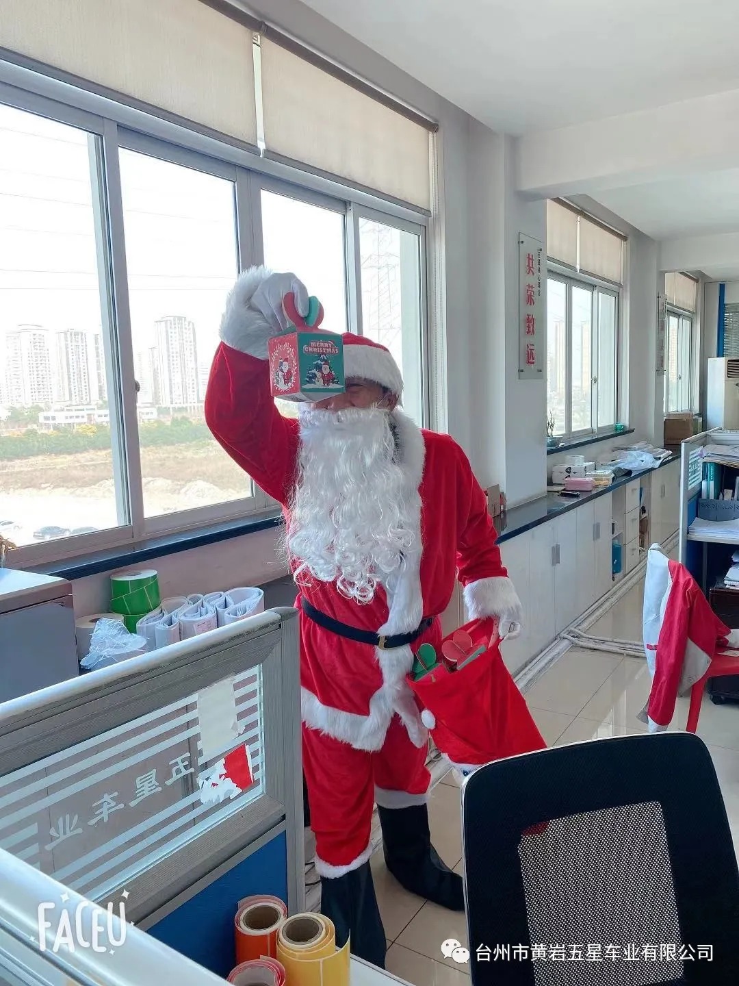 今天下午公司派圣誕老人給員工送平安禮物,