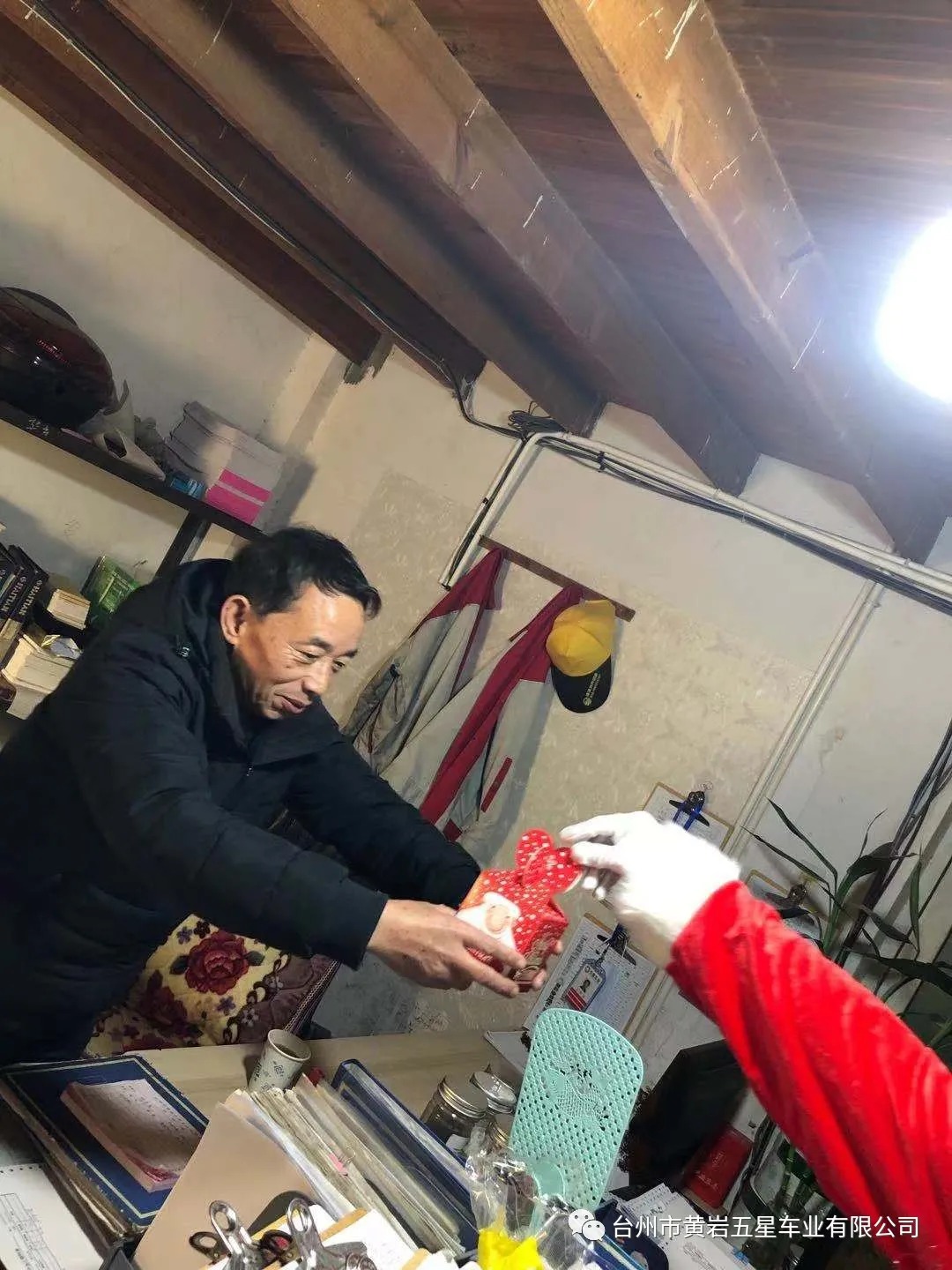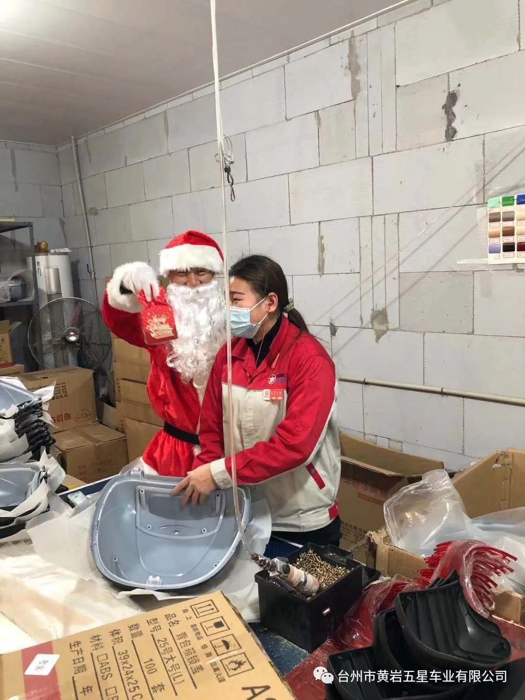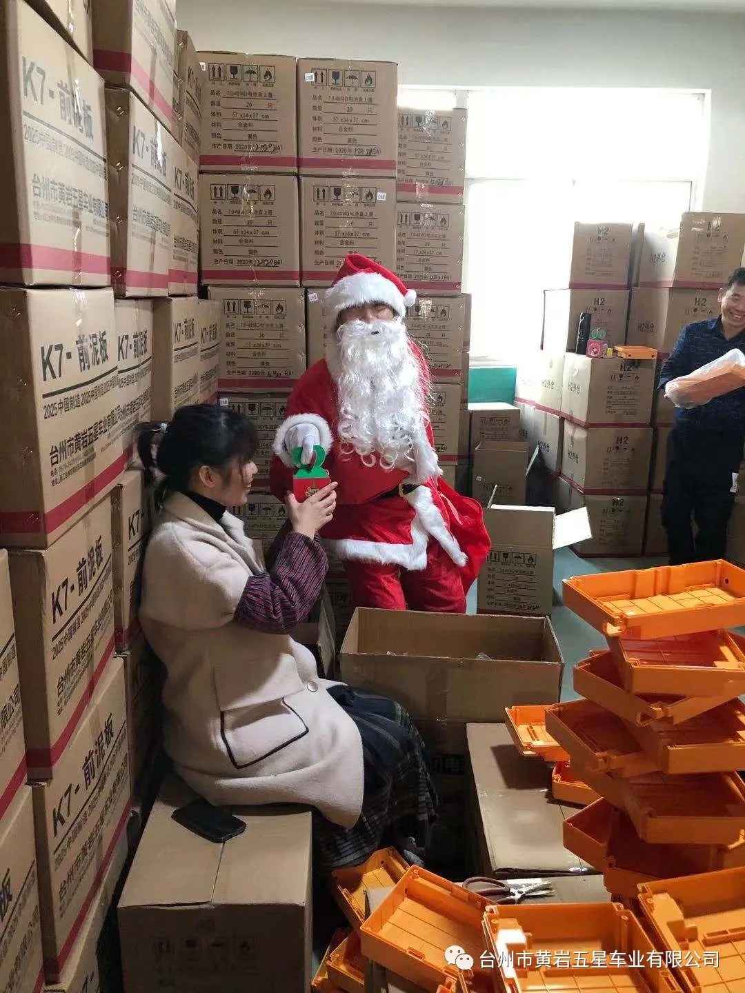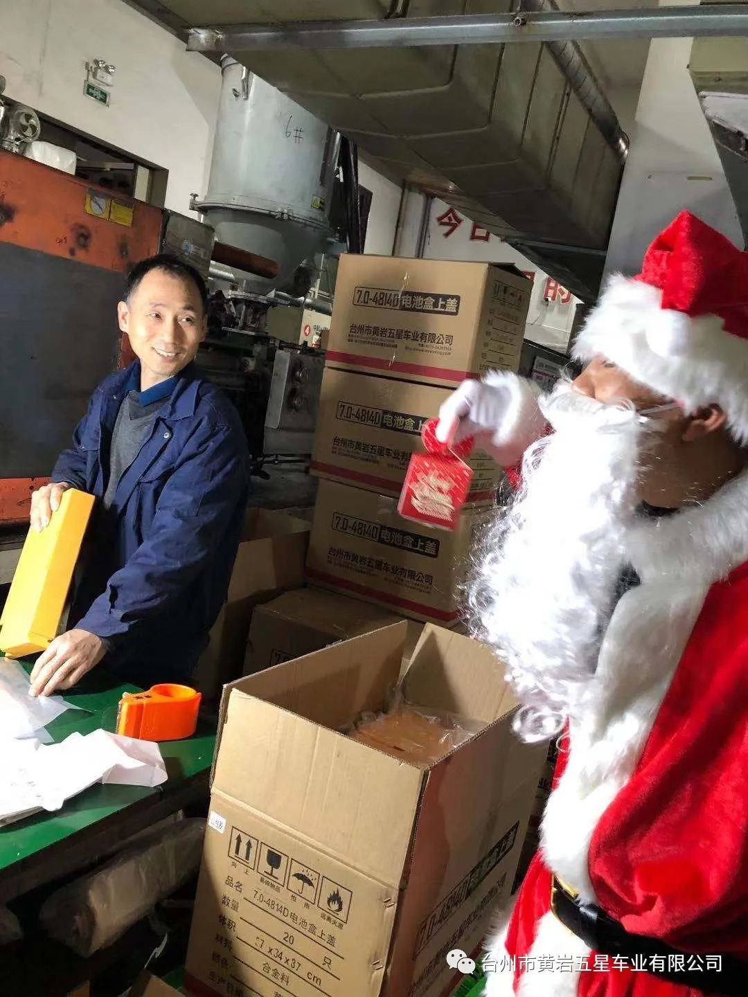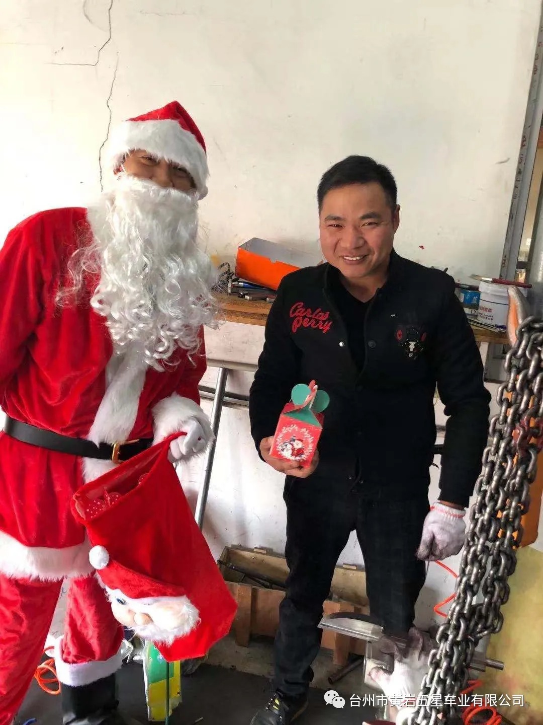 今天下午公司派圣誕老人給員工送平安禮物,