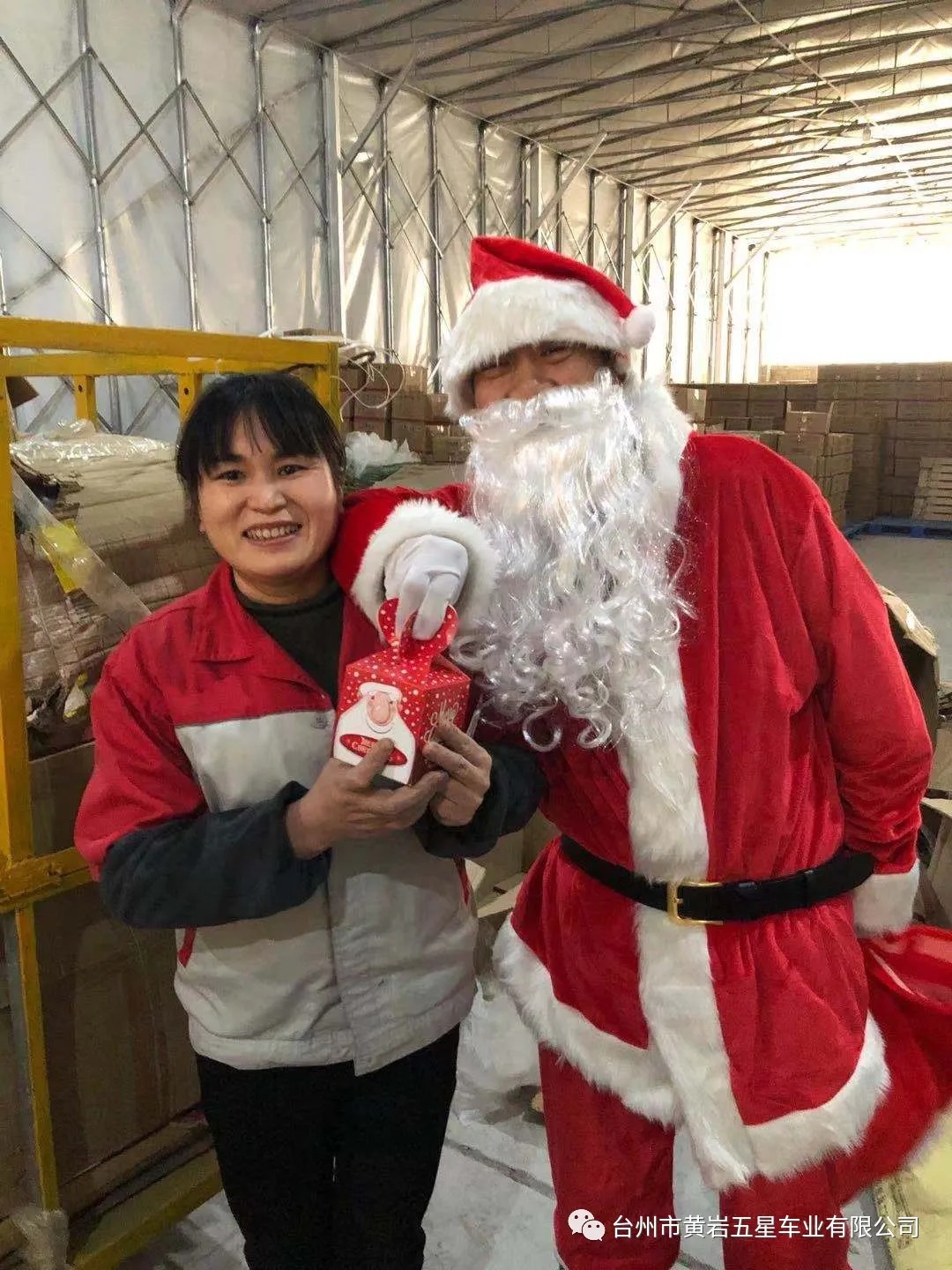 今天下午公司派圣誕老人給員工送平安禮物,