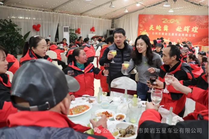 臺(tái)州市黃巖五星車業(yè)有限公司與杭州夏致電子科技有限公司共同于2025年1月13日舉辦以“靈蛇舞?赴輝煌” 為主題的新春年會(huì),在沙埠佛嶺花語(yǔ)堂隆重舉行。在這喜慶的時(shí)刻大家歡聚一堂,共同迎接充滿希望的未來(lái)。
