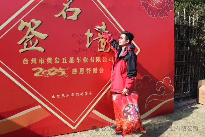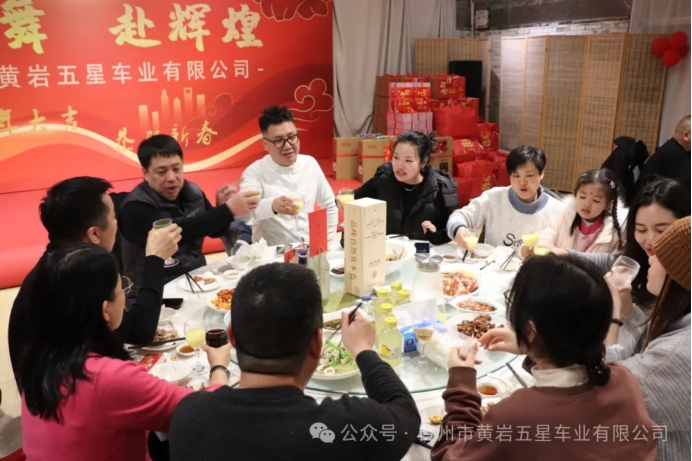黃巖五星車業(yè)董事長(zhǎng)兼總經(jīng)理周正華先生致詞:總結(jié)一年來(lái)的風(fēng)風(fēng)雨雨,感謝每位員工的辛勤付出,展望新的一年,讓我們攜手共進(jìn),并祝福大家新春快樂,身體健康!